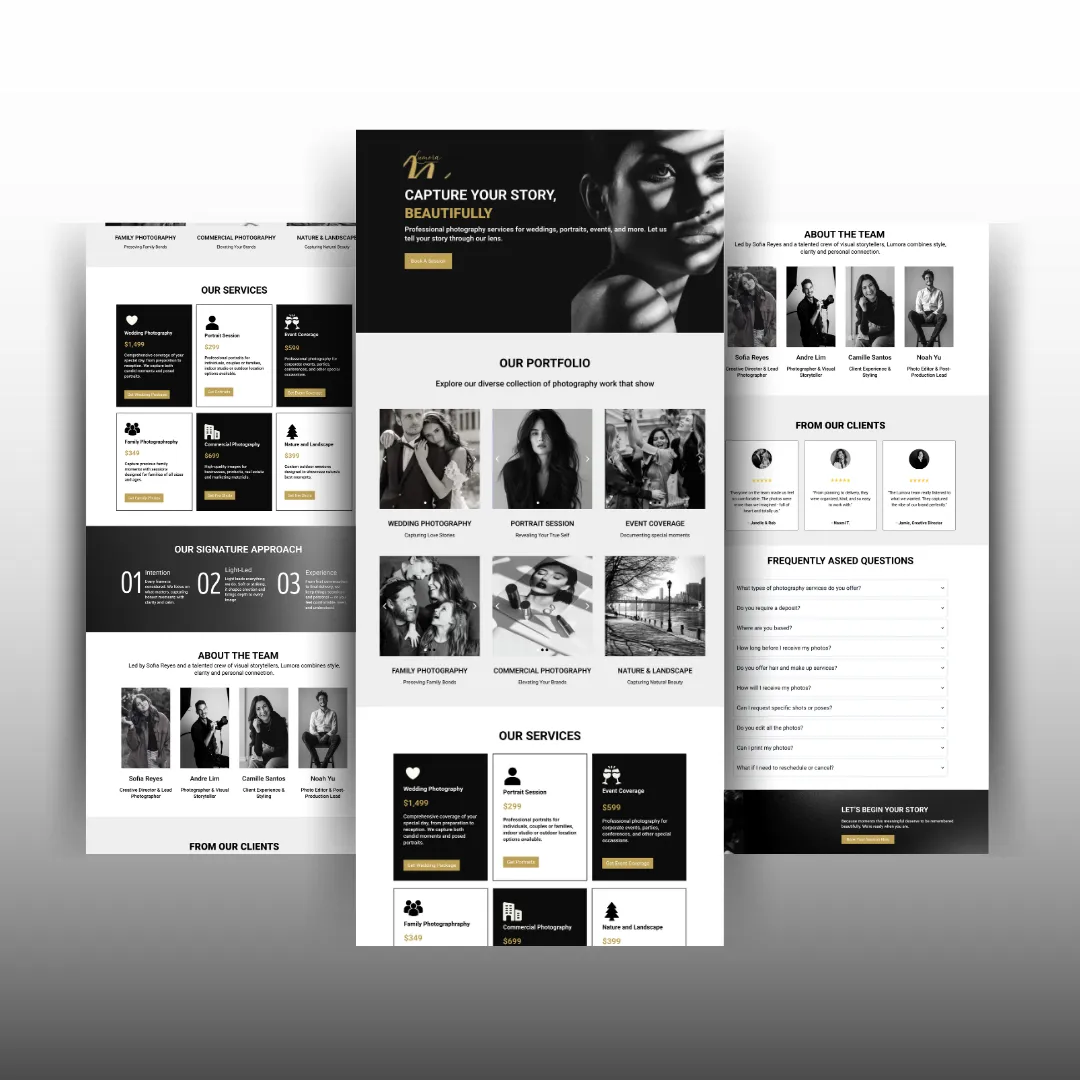 Converts traffic into paying clients by showcasing photography packages, testimonials, and automated booking and payment flow.